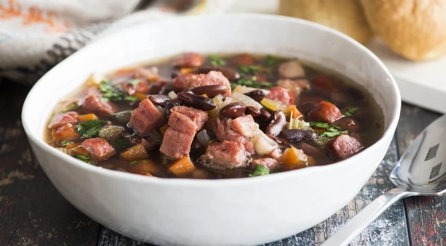 Фасолевый суп с рулькой и колбасками