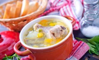Вылить зажарку в суп, посолить по вкусу, добавить лавровый лист, укроп и черный перец. Дать покипеть ещё 2 минуты.