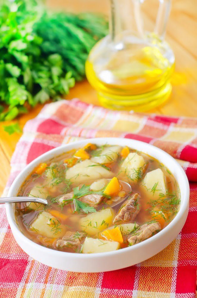 Как приготовить Мясной суп с картофелем и чечевицей
