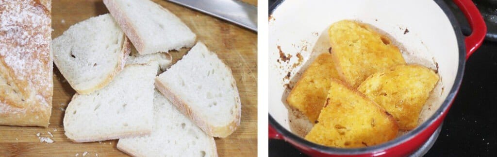 На новом масле обжариваем хлебушек с двух сторон до золотистого цвета.