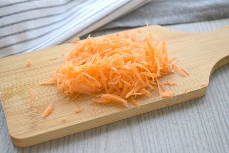 Через 5 минут добавляем к картошке средне натёртую морковку. После закипания варим ингредиенты 20 минут.
