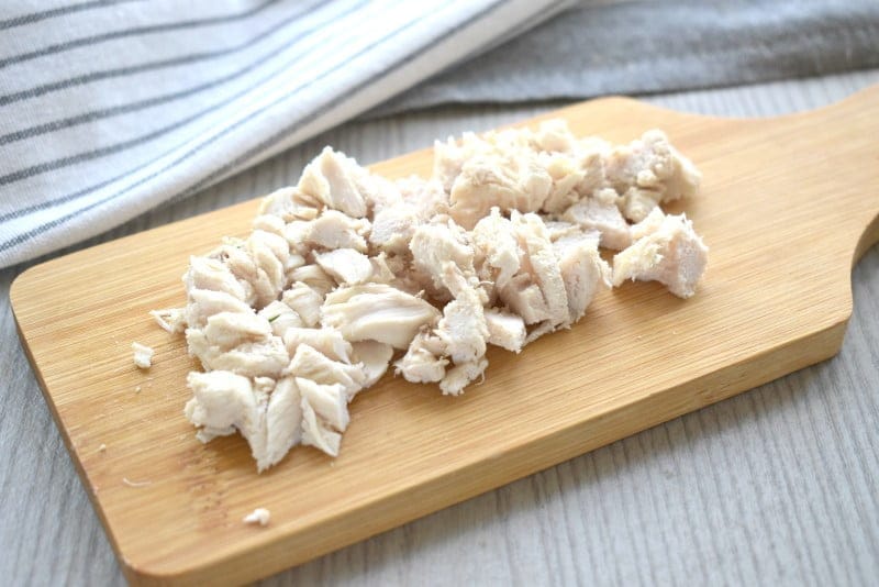 К этому моменту куриное мясо остынет, нарезаем его кусочками, сняв с кости, и добавляем в суп.