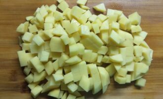 Картофель, морковь, перец, лук, чеснок нарезать кубиками.