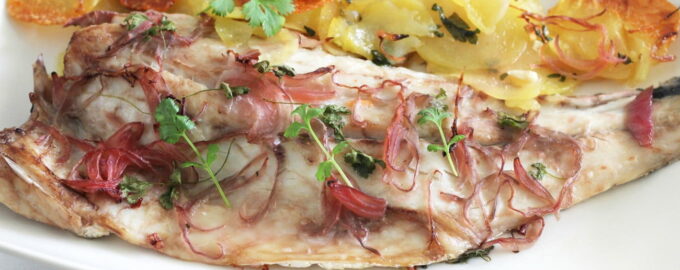 Запеченная рыба с маринованным луком и кинзой представляет собой блюдо, которое удивит своими контрастными вкусами. Они смешиваются в меру пикантности