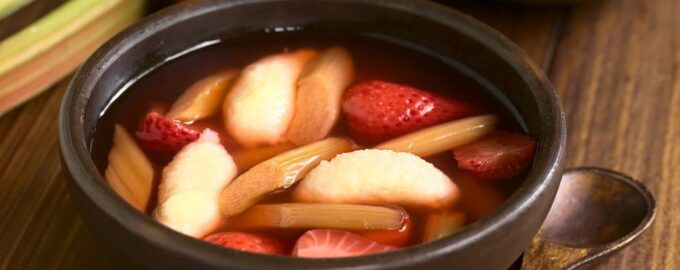 Содержание Для клецок: Как приготовить Фруктовый суп из клубники, ревеня и клецок Пошаговый рецепт Ингредиенты 250 гр. Ревень 100 гр. Сахар 2 стакана Вода
