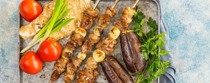 В Грузии готовят шашлык из баранины в баклажанах — мцвади. Однако, такой способ требует определенной сноровки: попробуйте нанизать на шампур баклажан