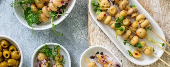 Используйте шпажки из дерева, они более эстетичные и экологичные, чем пластиковые. Ингредиенты Шампиньоны по-провански с ароматными травами Bonduelle 1