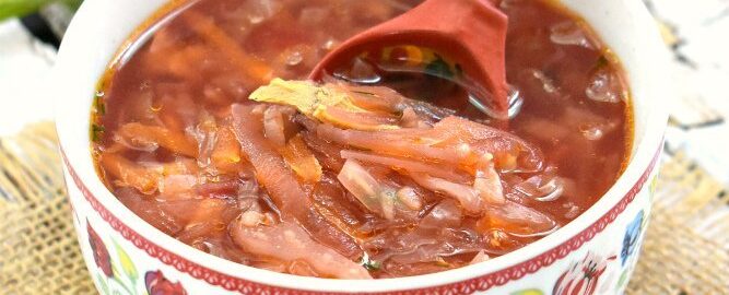 Ингредиенты свинина — 350 гр картофель — 4 шт. капуста молодая — 350 гр морковь — 1 шт. лук — 1 шт. свекла вареная —
