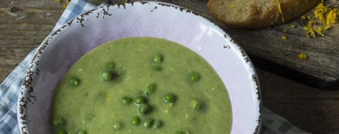 Для пикантного вкуса гренки можно посыпать корицей или ванилью, а суп подать с натуральным йогуртом и медом или кленовым сиропом. Ингредиенты Зеленый горошек