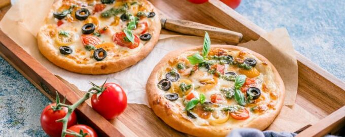Мини-пицца с моцареллой и помидорами готовится по классическому рецепту: разница только в уменьшенном формате, который предусмотрен в нашем случае.