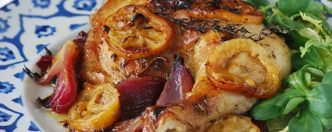 Ингредиенты Куриные задние четвертины (крупные окорочка с кожей) — 2 шт. Красный или сладкий лук — 1 Чеснок — 1 зубчик Лимон — 2-3 шт. Дижонская горчица —.