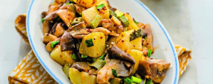 Постный салат с грибами можно назвать вариацией на тему традиционного немецкого картофельного, только, по понятным причинам, без бекона в составе.