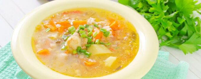 Ингредиенты 1/4 шт. Курица 2 ст. л. Рис 3 шт. Картофель 2 шт. Соленый огурец 1 шт. Морковь 1 шт. Лук репчатый по вкусу Соль по вкусу Перец...