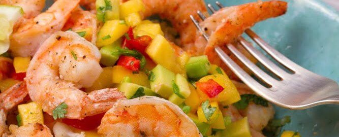 Содержание Для гарнира Как приготовить Сальса из манго и авокадо с жареными креветками Пошаговый рецепт Ингредиенты 200 г Креветки готовые 1 зубччик Чеснок 1-2 ст.
