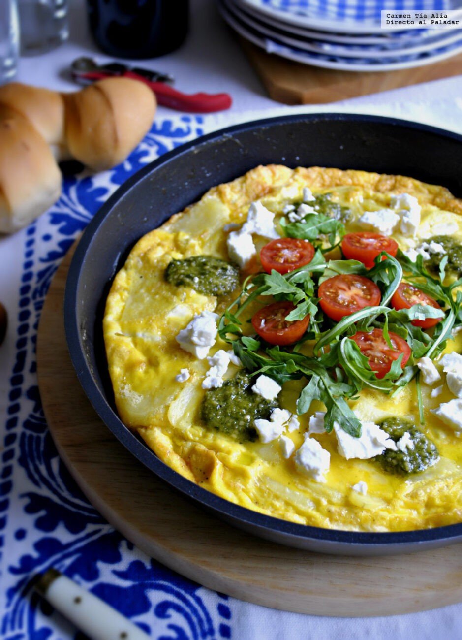 Подаем фриттату с соусом песто и дополнительным сыром. Приятного аппетита!