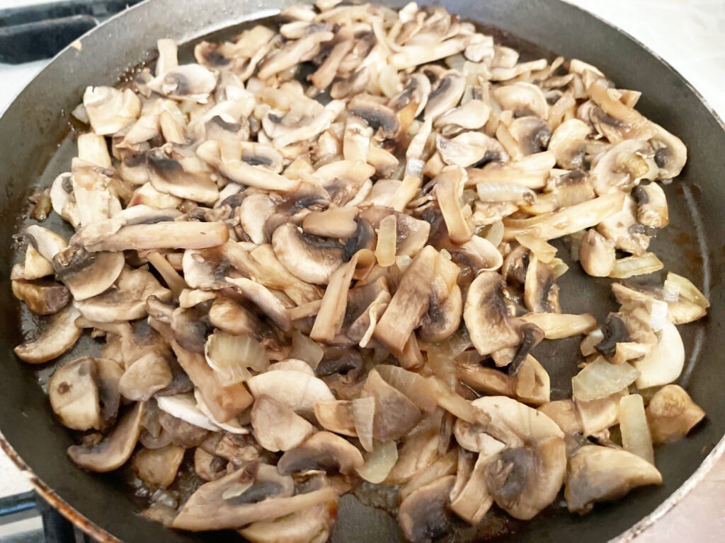 Грибы выделяют сок, поэтому тушим их до тех пор, пока жидкость не испарится. Сковороду крышкой не накрываем.