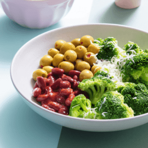 - Подавайте брокколи с фасолью, оливками и тертым сыром.