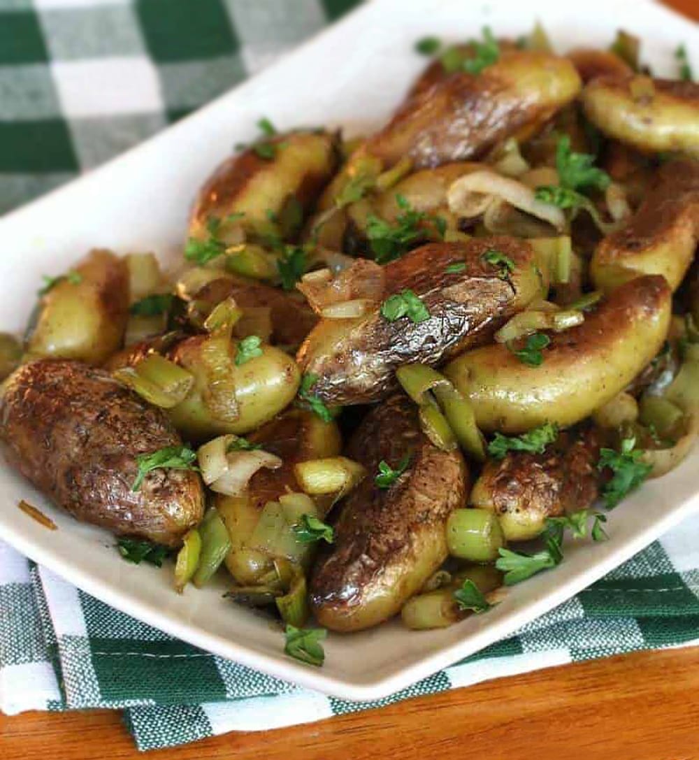 Молодой жареный картофель в мундире с луком-пореем. Проще не бывает! Полезный, вкусный бюджетный гарнир для всей семьи!