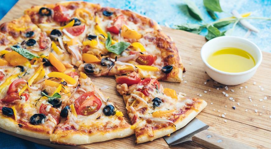 Пиццу можно приготовить с любой начинкой. Овощная пицца с моцареллой — лучший выбор для тех, кто любит пиццу, но не ест, к примеру, мясо.