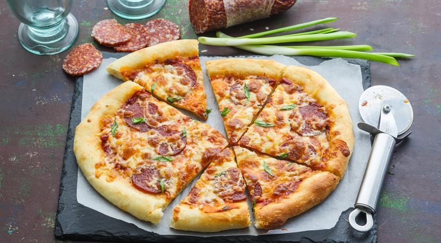 Пицца с копченой колбасой и сыром