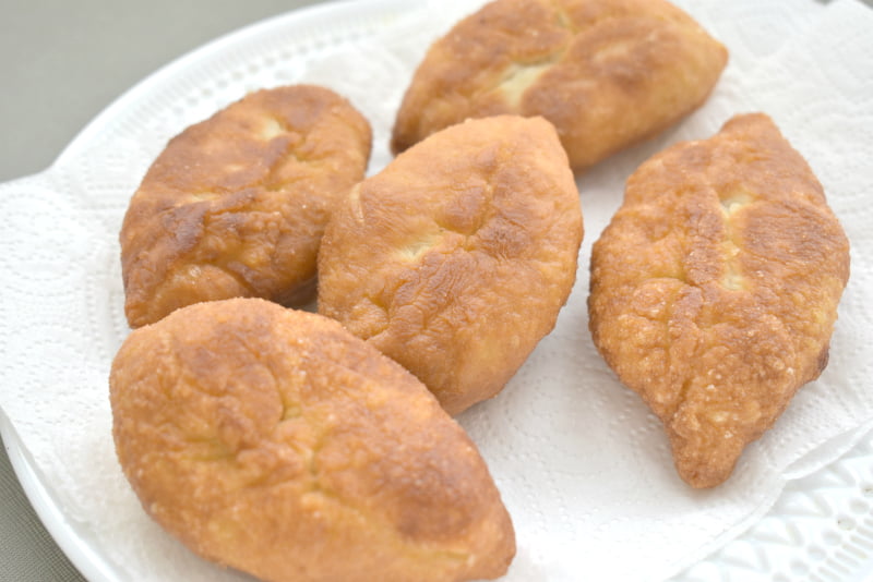 Готовые пирожки выкладываем на бумажные полотенца, чтобы удалить с них лишнее масло. Вкусные пирожки с мясом и грибами подаём к столу.