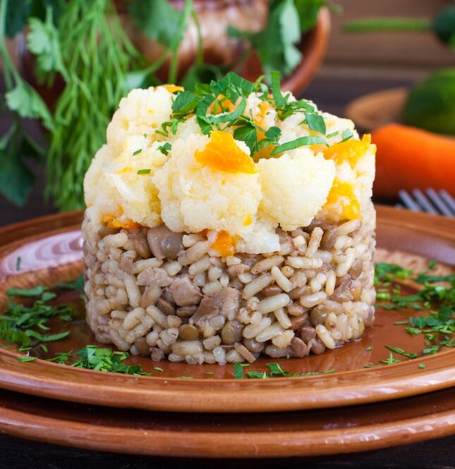 Ризотто — вкусное итальянское блюдо, в котором прекрасно уживаются любые дополнительные ингредиенты. В этом рецепте сделаем прекрасное ризотто с добавлением грибов, цветной капусты и чечевицы — настоящий взрыв вкуса и пользы!