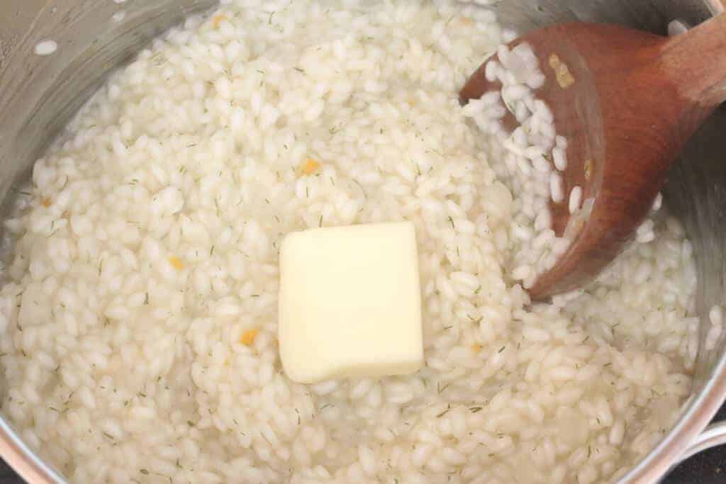Если вы используете свежий лосось, вам придется его приготовить, прежде чем добавлять в ризотто. Его можно запечь, обжарить на сковороде или на гриле, в зависимости от того, какой метод вам больше нравится. Просто приготовьте его, а затем разделите на кусочки и добавьте в ризотто, когда придет время.