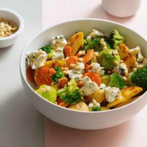 - Подавайте овощи, присыпав кедровыми орешками и кусочками сыра.