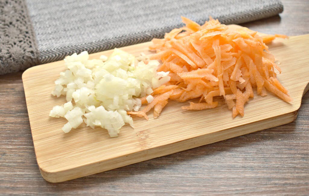 Морковь измельчаем теркой, лук шинкуем кусочками.