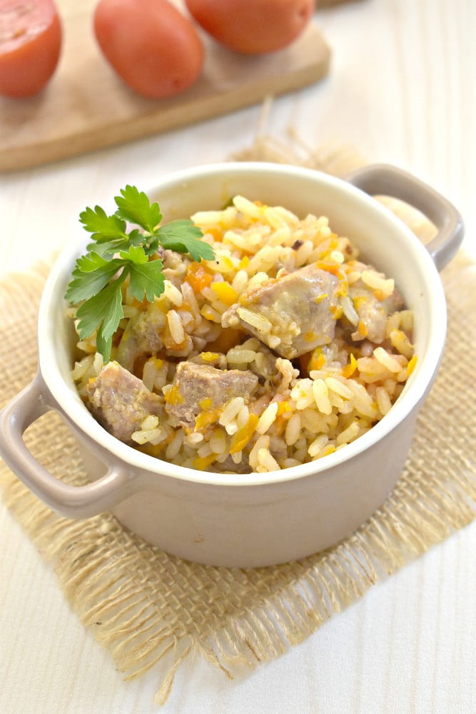 Свинина, тушённая с рисом и овощами – это настоящая классика домашней кухни.