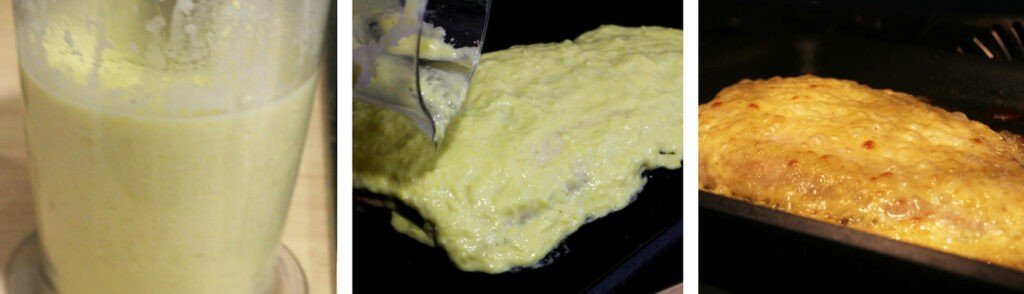 Перекладываем обжаренный лук в чашу блендера, вливаем сливки и измельчаем при помощи блендера. Луковый соус готов. Переворачиваем рыбу и готовим в духовке еще шесть-семь минут.