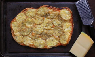 Нафаршируйте лук полученной смесью и посыпьте еще немного тертым сыром.