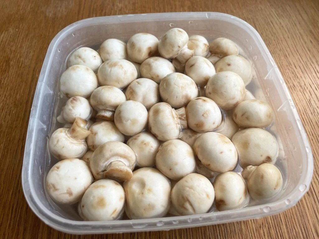 Грибы хорошенько промойте под проточной водой. Используйте мелкие и желательно белые грибочки, так как при варке он немного темнеют.