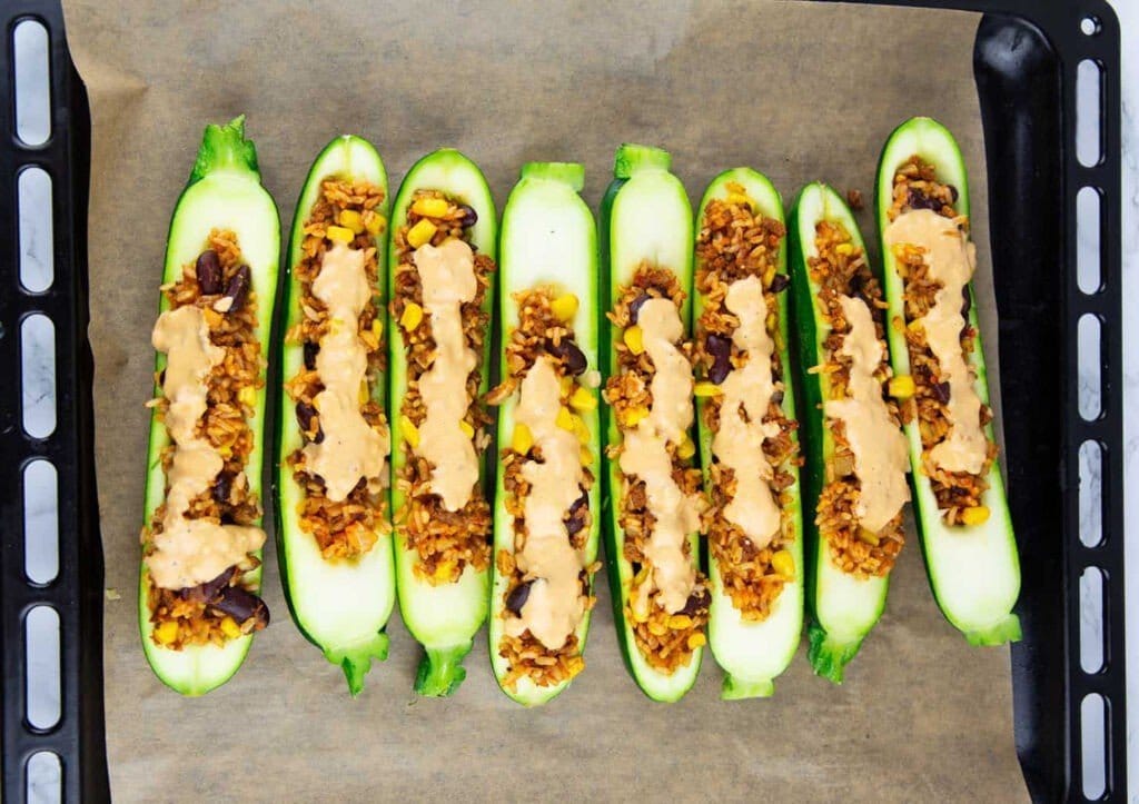 В зависимости от размера кабачков, которые вы используете, у вас могут быть остатки. Просто подавайте начинку отдельно, используйте ее на следующий день или используйте больше кабачков.