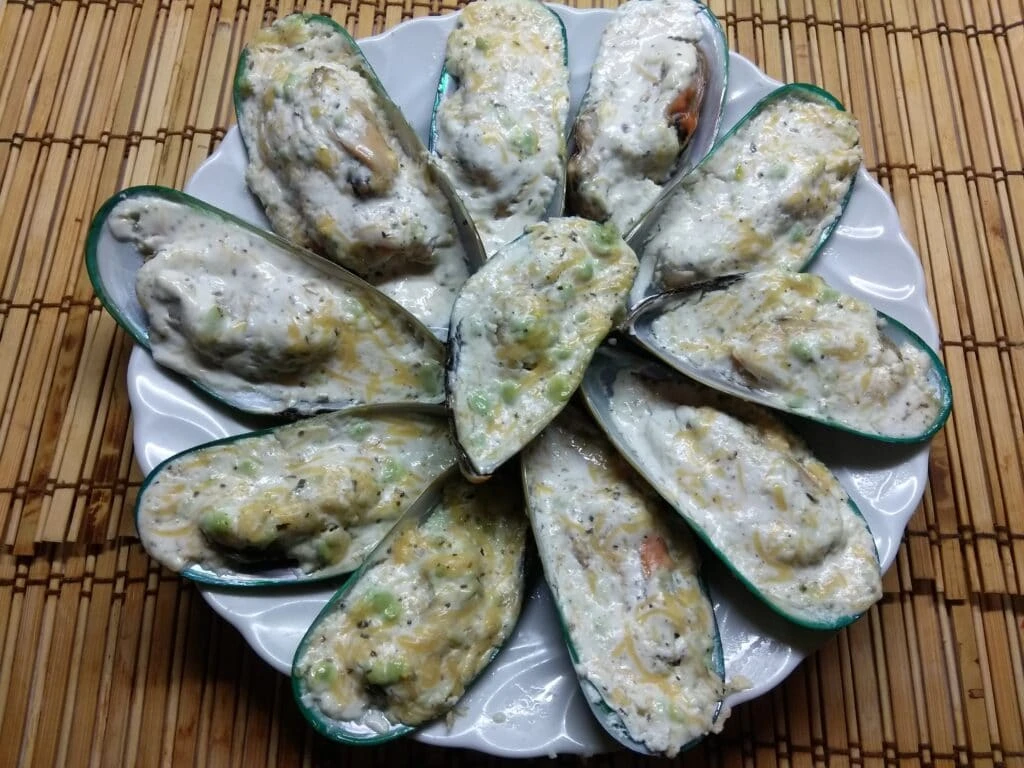 Мидии под чесночно-сырным соусом