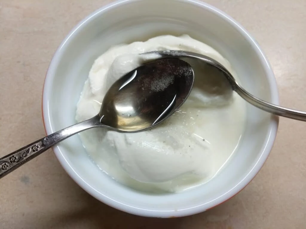 1. Сметану вылить в миску, добавить соль.