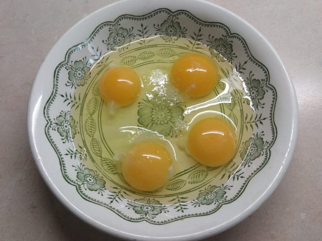 5. Затем положить пластины сыра, накрыть крышкой, уменьшить огонь и готовить до тех пор, пока яйца не прожарятся.