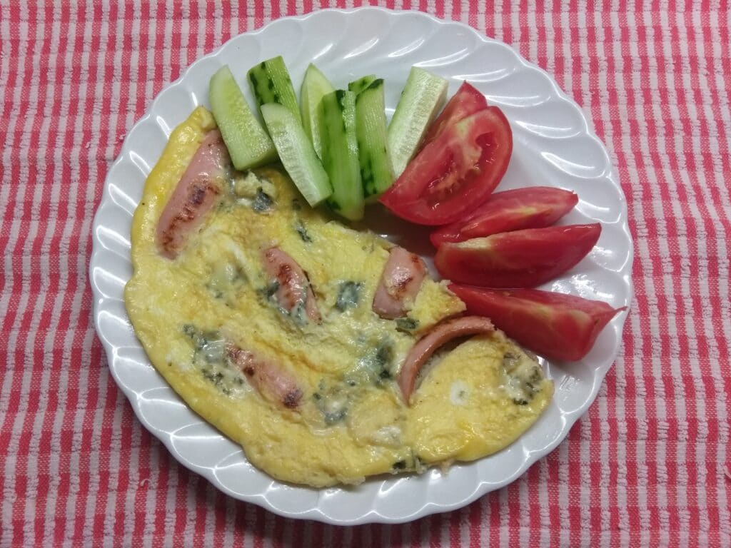 Вкуснейший и очень питательный омлет на двоих – с сосисками и сыром Дор Блю. Острота сыра придаст блюду невероятный вкус. С таким королевским завтраком любой день начнётся волшебно
