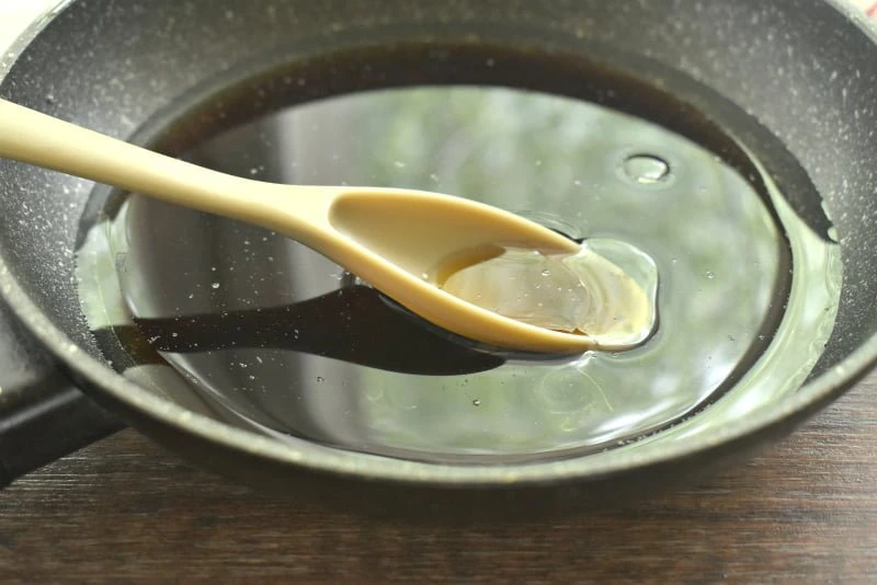 Чтобы приготовить пельмени в соевом соусе, подберём глубокую сковороду. Вливаем в сковороду кипячёную воду, добавляем растительное масло в указанном количестве.