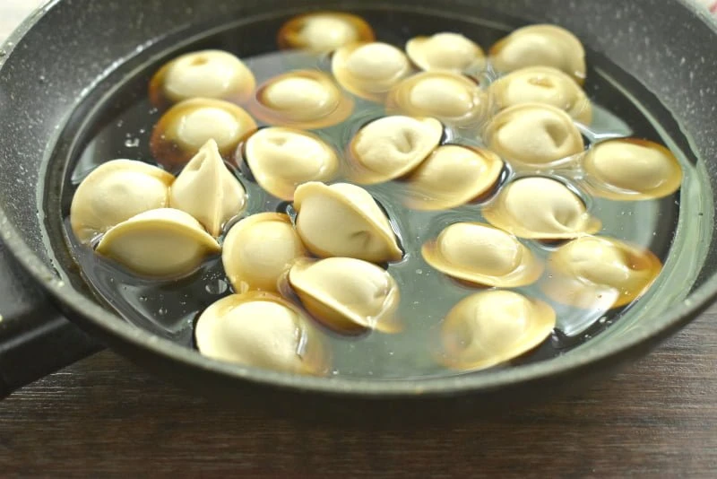 Пельмени в соевом соусе на сковороде