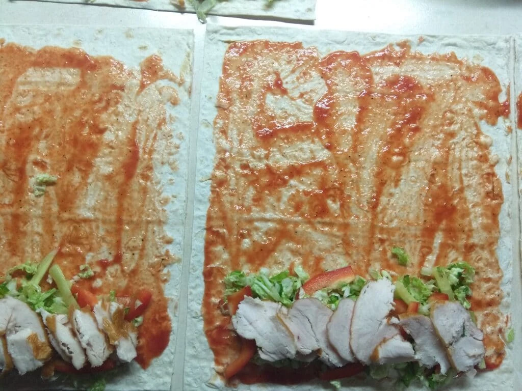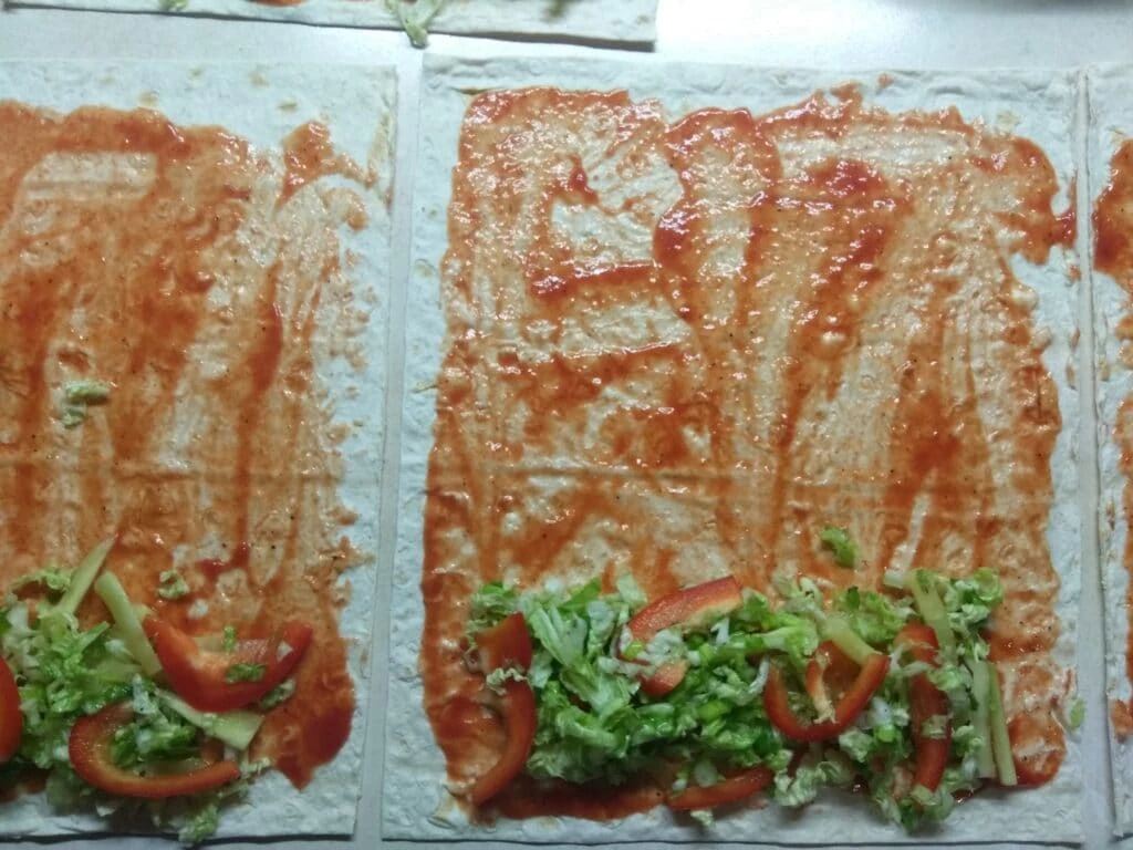 10. Свернуть лаваши в рулеты и разогреть в микроволновке 2-3 минуты.