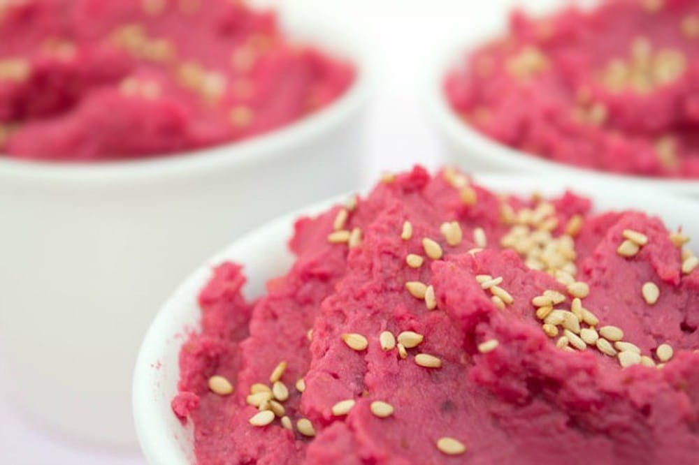 Если вы любитель хумуса, почему бы вам не приготовить красочный яркий хумус из свеклы? Он очень вкусный, сытный и отлично поднимает настроение 🙂