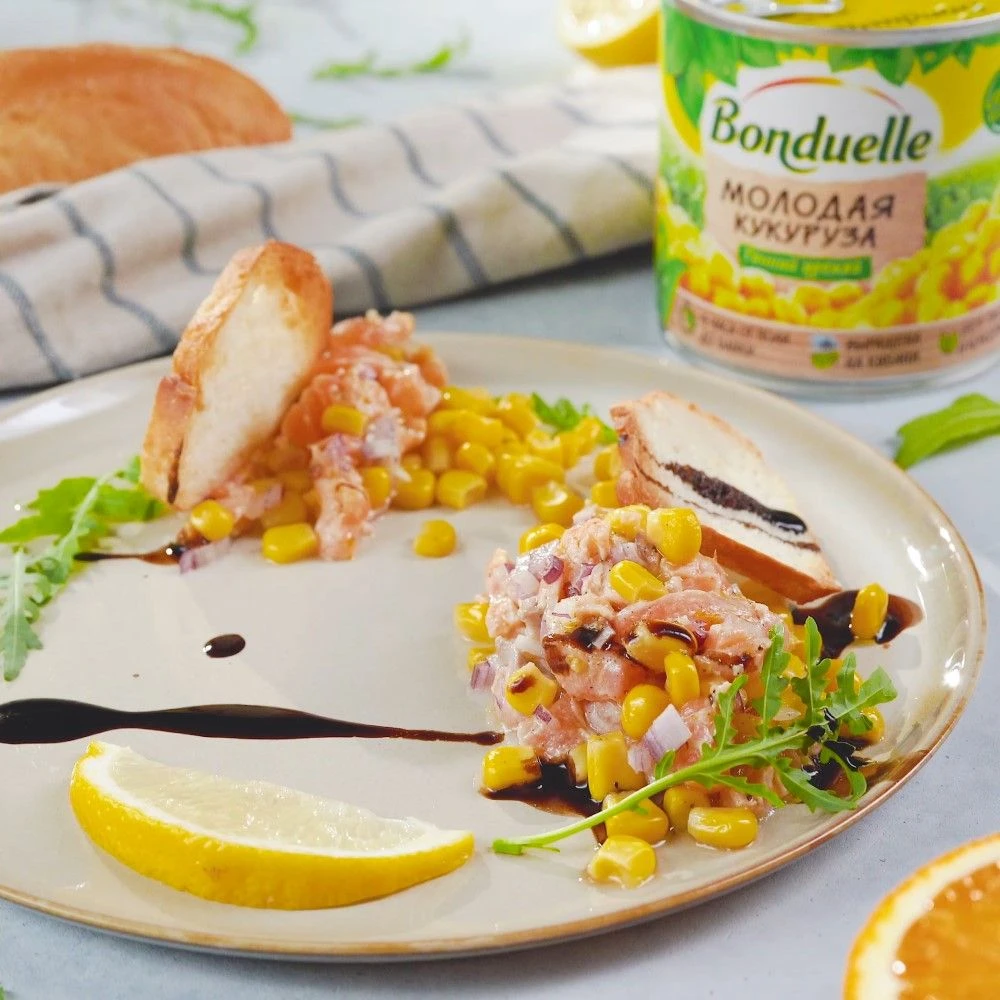 Тартар из красной рыбы с кукурузой