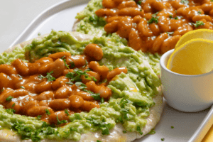 3. Подавайте готовое блюдо с багетом, рукколой и бальзамическим соусом.