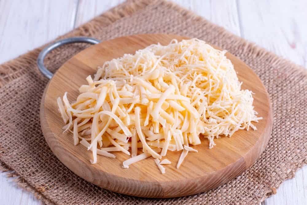 | 3 | Сыр натереть на тёрке. Часть сыра натереть на мелкой терке (для верхушки), а часть на крупной (для теста). |