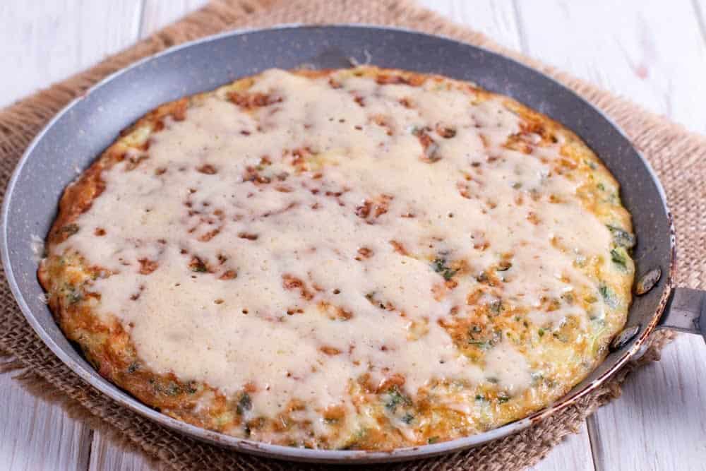 | 7 | Готовить под крышкой несколько минут пока не образуется золотистая корочка. Затем блин перевернуть, посыпать сверху тёртым сыром. |