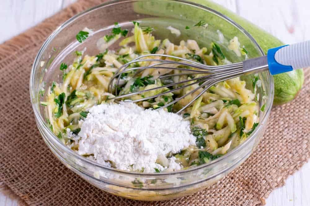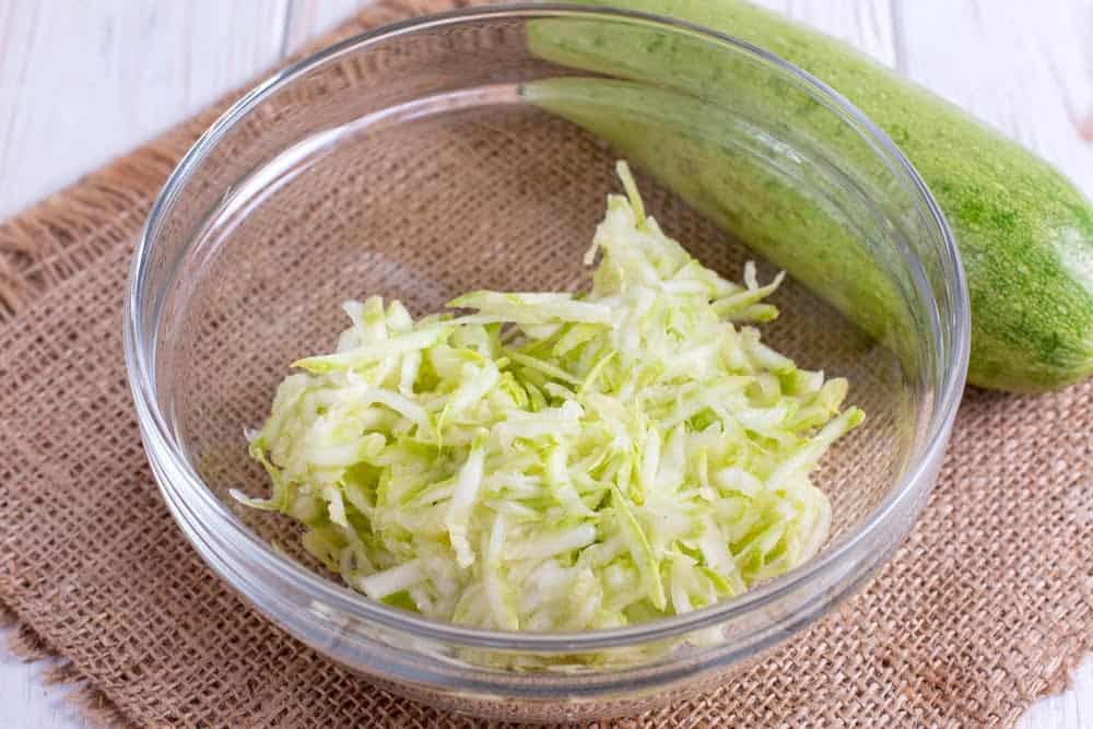 | 2 | При необходимости слить лишнюю жидкость, слегка отжав тёртые кабачки. |