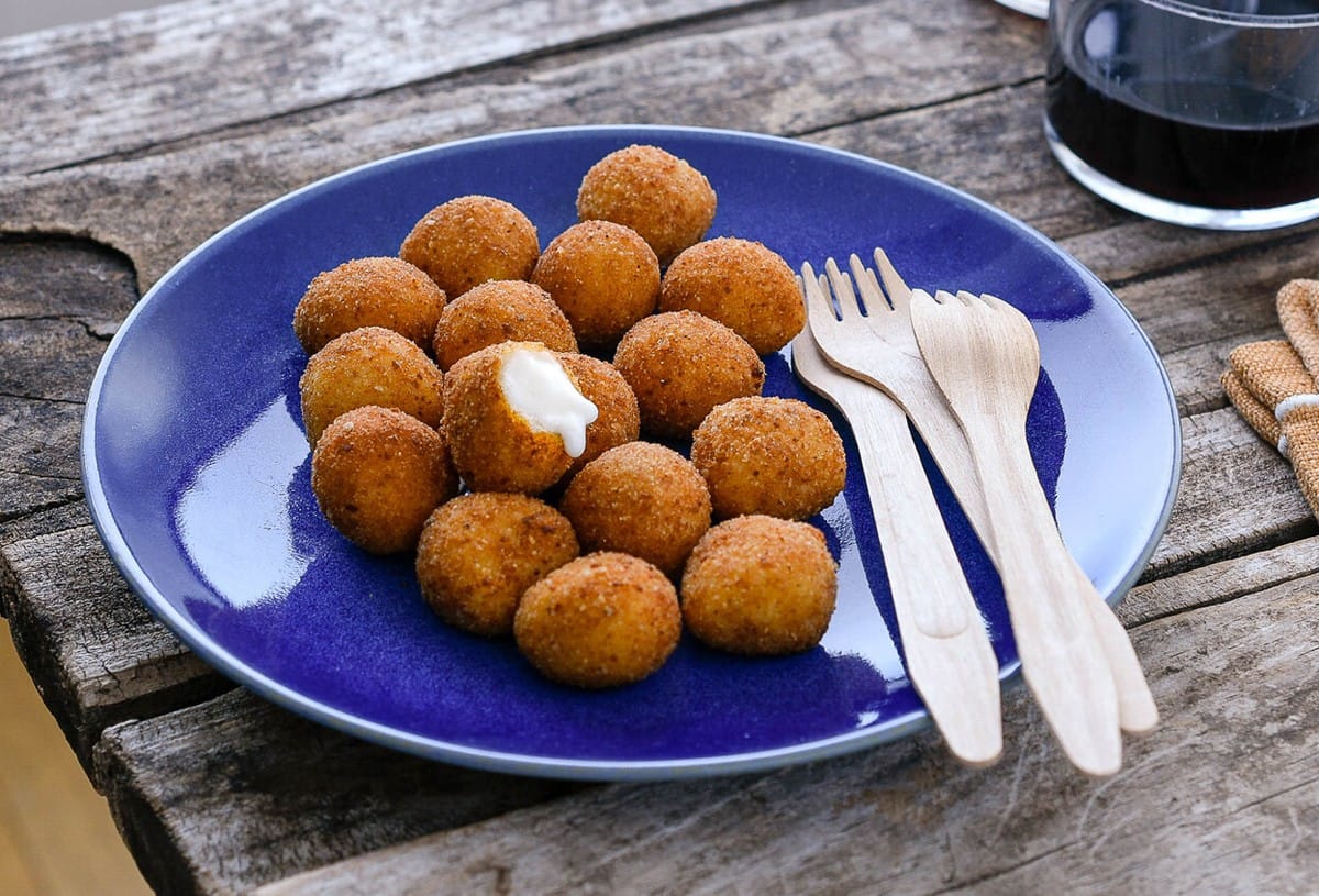 В кастрюле или глубокой сковороде разогреваем достаточное количество масла (сырные шарики должны быть покрыты при жарке в масле). Когда масло раскалится, погружаем шарики в кастрюлю. Теперь не трогайте их и не перемещайте, пока не подрумянятся. Это займет несколько секунд. После вынимаем и сразу подаем к столу, пока сыр внутри расплавленный. Это безумно вкусно!